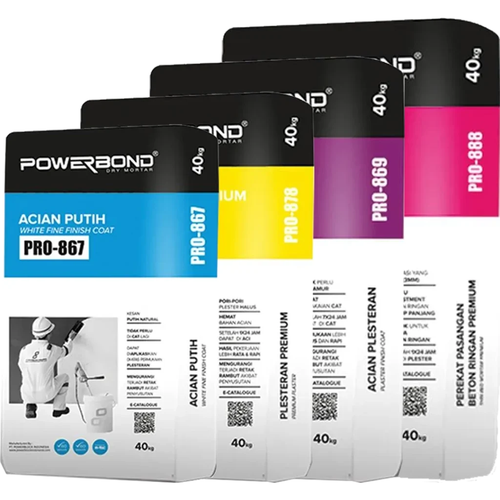 Pilih kategori produk sesuai jenis pekerjaan: struktur, pasangan bata, plester, perekat keramik, atau perbaikan permukaan.